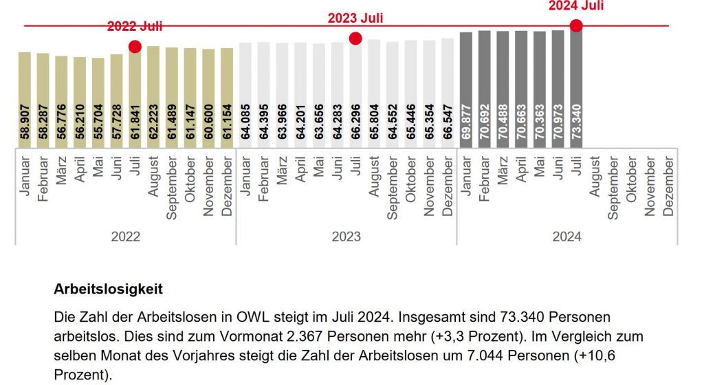 Die Zahl der Arbeitslosen im Kreis Herford steigt im Juli 2024. Insgesamt sind 8.900