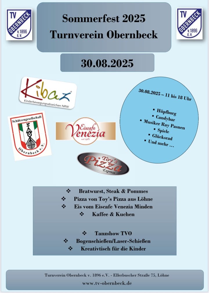 Der TV Obernbeck veranstaltet am Sonnabend, den 30.08. sein großes Sommerfest im Sport- und Freizeipark Löhne.