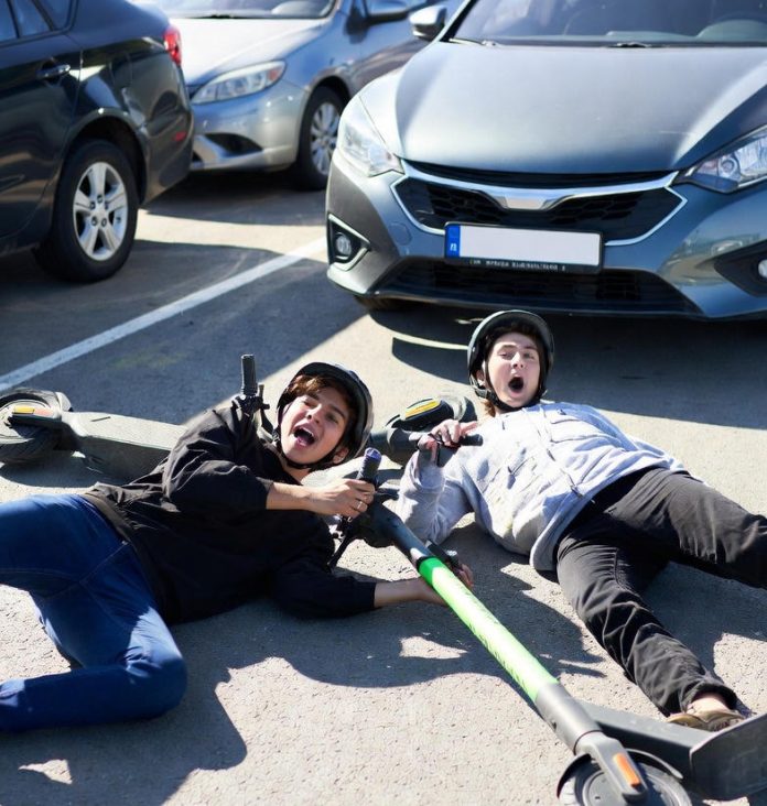 Zur gleichen Zeit querte ein 13-Jähriger mit einem E-Scooter den Parkplatz. Im Bereich eines Einkaufswagenhäuschens stießen beide Verkehrsteilnehmer zusammen und kamen zu Fall. Der Roller des Unfallverursachers kollidierte dabei noch mit zwei weiteren PKW, die auf dem Parkplatz geparkt waren.