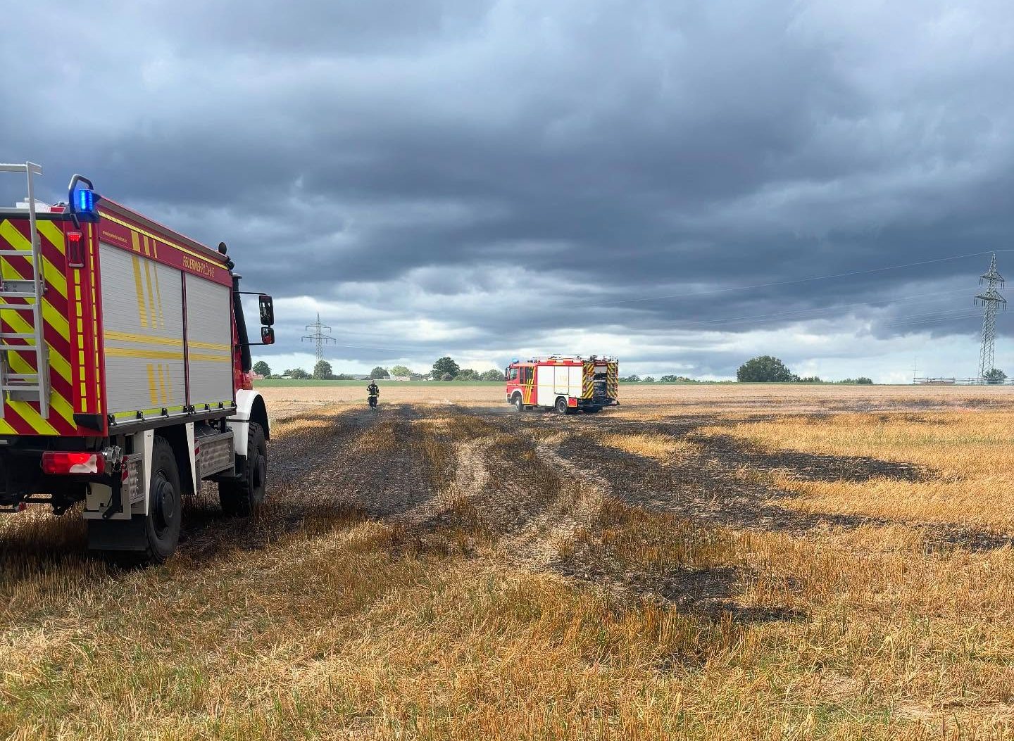 Am Samstagnachmittag, 23.08.2025, rückte die Feuerwehr Löhne zu einem Flächenbrand in Mennighüffen aus. Gegen 14:45 Uhr wurde ein Brand auf einem Stoppelfeld gemeldet. Rund 150 Quadratmeter standen in Flammen. Dank des schnellen Eingreifens der hauptamtlichen Wache und der Löschgruppe Mennighüffen konnte eine Ausbreitung auf das restliche Feld verhindert werden.
