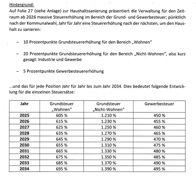 Obige Steuerplanungen wurden von LBA + CDU am 21.5.’25 abgelehnt /