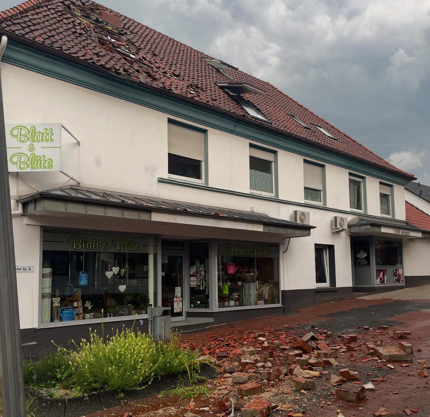 Die Unwetterfront, die mit Windgeschwindigkeiten von bis zu 100 km/h und starkem Regen über Löhne zog, verursachte erhebliche Sachschäden. In mehreren Stadtteilen stürzten Bäume auf Straßen, Autos und Stromleitungen, was zu Verkehrsbehinderungen und vereinzelten Stromausfällen führte. Besonders betroffen waren Wohngebiete in der Innenstadt und im Bereich Gohfeld, wo Dächer von Wohnhäusern und Garagen teilweise abgedeckt wurden. Herabfallende Dachziegel beschädigten geparkte Fahrzeuge, und in einigen Fällen drang Wasser in Keller und Wohnhäuser ein.