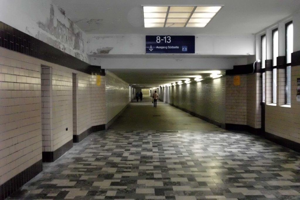 - Der Weg hinter dem Gebäude des Busbahnhofs hinauf zum Busbahnhofsplatz.