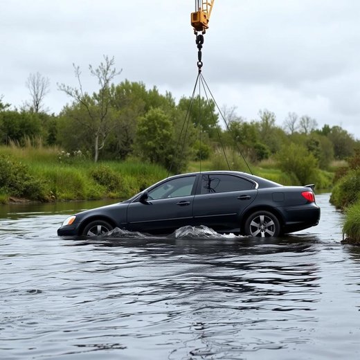 - Für die Bergung des versunkenen Nissan Micra musste ein Spezialkran eingesetzt werden.
