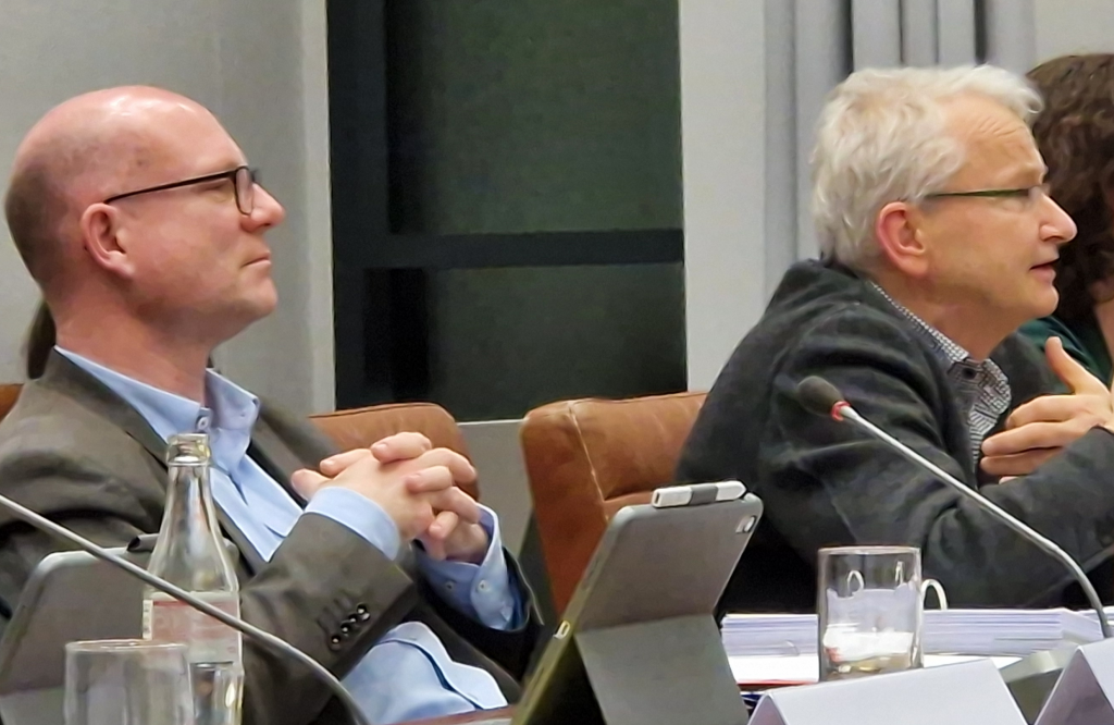 Baudezernent Ulrich Niemeyer (rechts im Bild) informierte den Rat in der Sitzung vom 25. Februar 2026 über das erneute Scheitern. Die Stimmung im Sitzungssaal war entsprechend gedrückt. Ratsmitglieder und Besucher reagierten mit langen Gesichtern oder – je nach Mentalität – mit zynischen Einwürfen: „Wieder wurde eine Hoffnung auf eine zeitnahen Lückenschluss zu Grabe getragen.“
