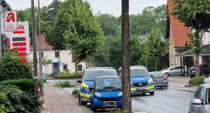 Die Polizei rückte umgehend aus und sperrte den Bereich um die Apotheke in der Bahnhofsstraße weiträumig ab, um die Sicherheit der Anwohner zu gewährleisten. Aufgrund der Drohungen mit einer Waffe und einer Bombe wurde das SEK hinzugezogen. Die Spezialkräfte konnten die Frau und ihre Kinder sicher aus der Gefahrenzone retten. Bei der Festnahme des Täters kam es zu einer Konfrontation, bei der ein Polizist leicht verletzt wurde.