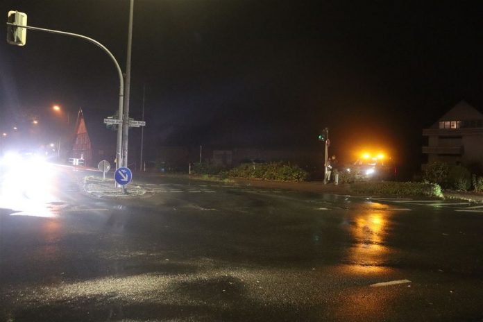 Im Bereich der Lichtzeichenanlage kam es zum Zusammenstoß der beiden Fahrzeuge. Der Junge auf dem E-Scooter verletze sich. Zur Unfallzeit herrschte Regen und es war dunkel.
