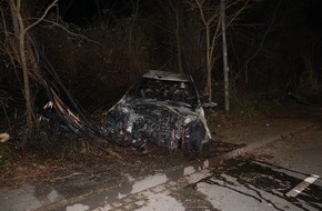 Das Fahrzeug brannte daraufhin vollständig aus. Es gelang dem Fahrer sowie seiner 17-jährigen Beifahrerin und seinem 17-jährigen Beifahrer, die beide ebenfalls aus Löhne stammen, das Auto eigenständig zu verlassen.
