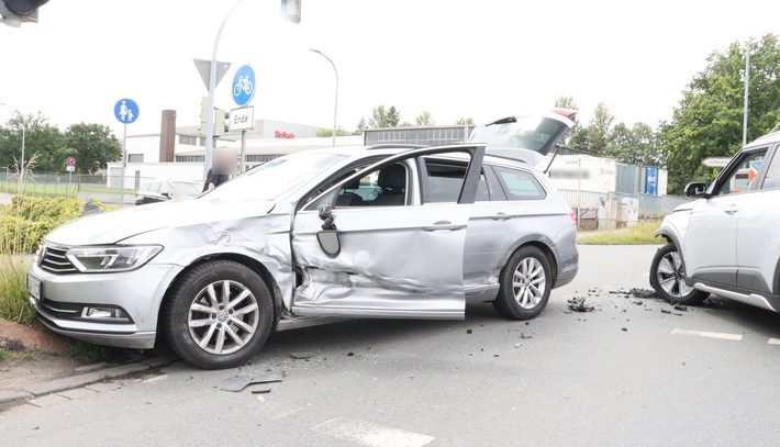 Am Samstagmittag (27.7.) wurden Polizeibeamte zu einem Verkehrsunfall auf der Oeynhausener Straße in Löhne gerufen. Bei Eintreffen der Beamten befanden sich ein beschädigter KIA soul und VW Passat im Kreuzungsbereich mit der Industriestraße und dem Weidengrund. Nach ersten Ermittlungen befuhr ein 78-Jähriger aus Bad Oeynhausen mit dem KIA die Oeynhausener Straße und beabsichtigte an der dortigen Ampelanlage nach links in die Industriestraße einzubiegen. Hierbei übersah eine entgegen kommende 33-Jährige aus Löhne mit ihrem VW Passat. Beide Fahrzeuge stießen im Kreuzungsbereich zusammen, wodurch beide Fahrzeugführer leicht verletzt wurden. Im VW Passat befanden sich neben einem weiteren Insassen auch zwei Kinder im Alter von 5 Jahren, die vorsorglich zur ärztlichen Untersuchung in ein Krankenhaus gebracht wurden. Beide Fahrzeuge wurden von der Unfallstelle abgeschleppt. Der Sachschaden wird auf ca. 10.000 Euro geschätzt. [Polizei HF sls, ots]