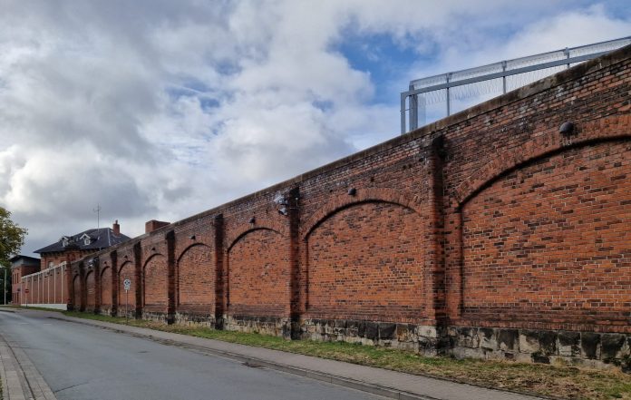 Hinter der Gaststätte die Herforder Justizvollzugsanstalt.